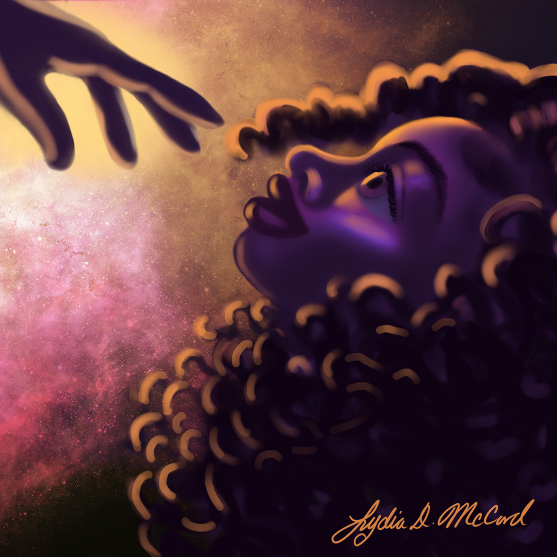 Hand of God was created during COVID 19. There were days where I felt antsy and on edge. Peace felt so far away and sadness lurked a lot. As time went on, I found a space where only I could lay and just meditate away from everything and discovered that God hand was still present and near to me. That there was still so much to accomplish. I channeled my fears and lost myself in this piece. As time went on the art became my peace away from the chaos.
